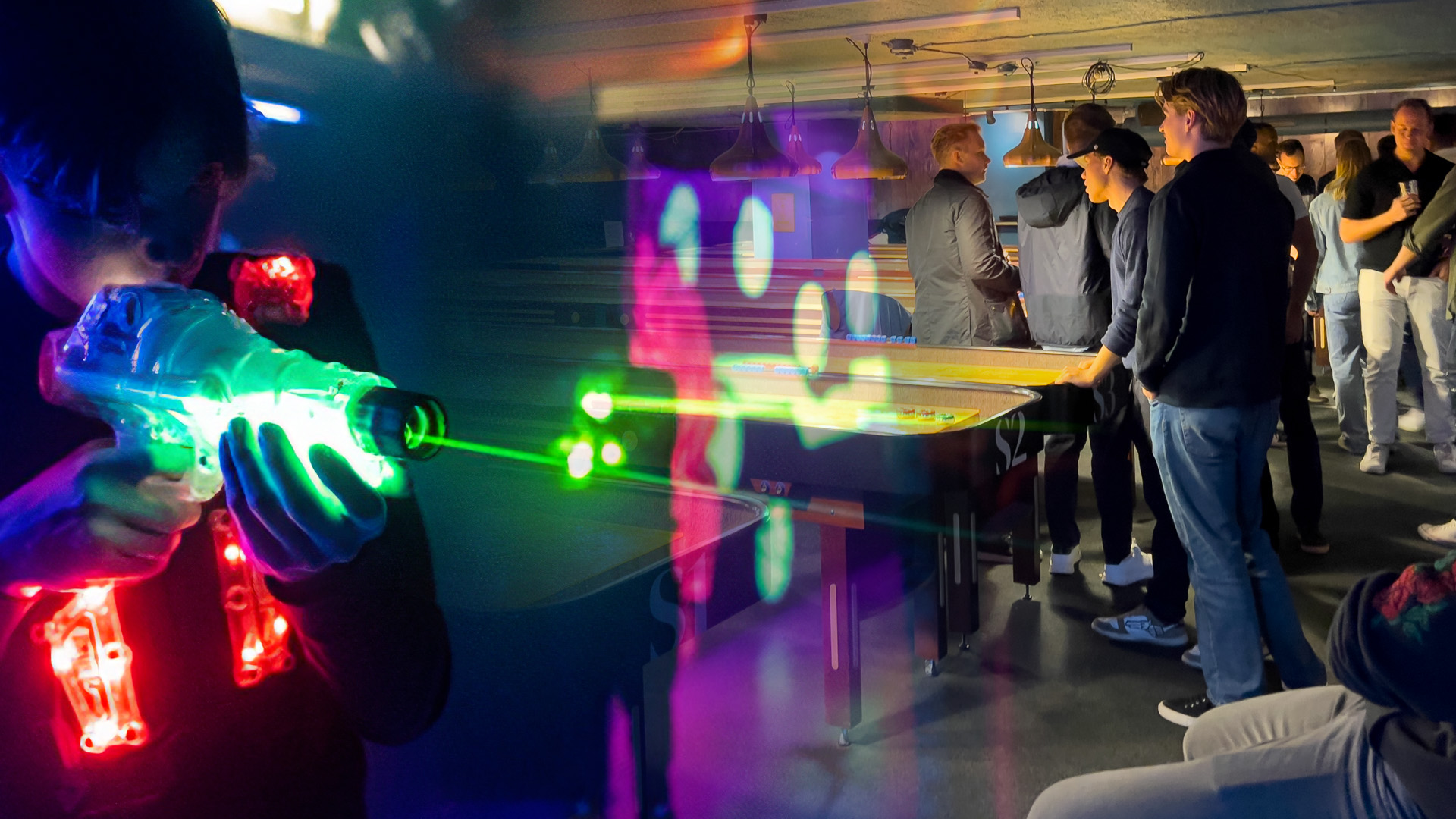 Den perfekta combinationen! Börja kvällen med att ni spelar laserdome (30 meter bort) som slutet sällskap vilket betyder att ni har hela banan för er själva! Sen går ni över till oss där ni har reserverade Shuffleboard som väntar på er.