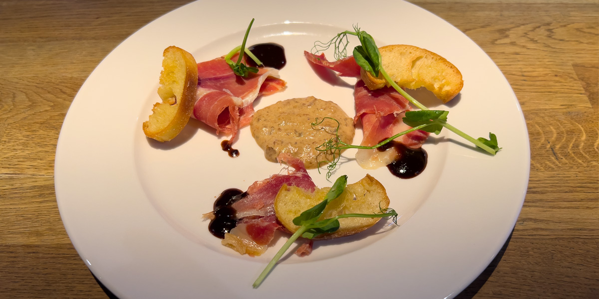 Lufttorkad skinka | Med svampcreme och krutonger |