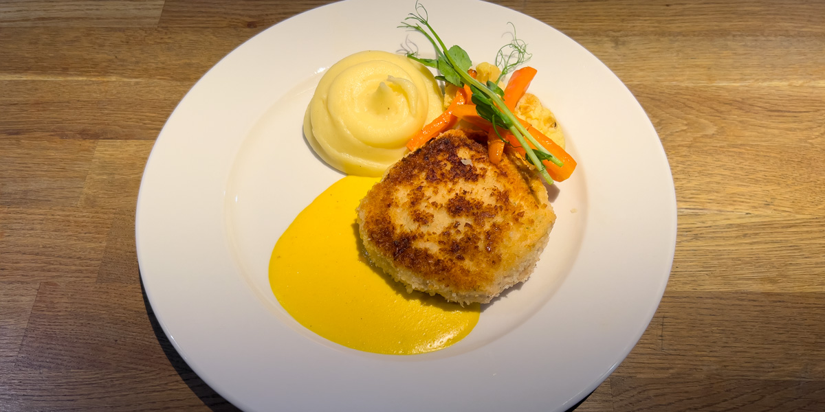 Havets Wallenbergare | På lax, torsk, räkor med vitvinssås, potatispuré samt rotfrukter |